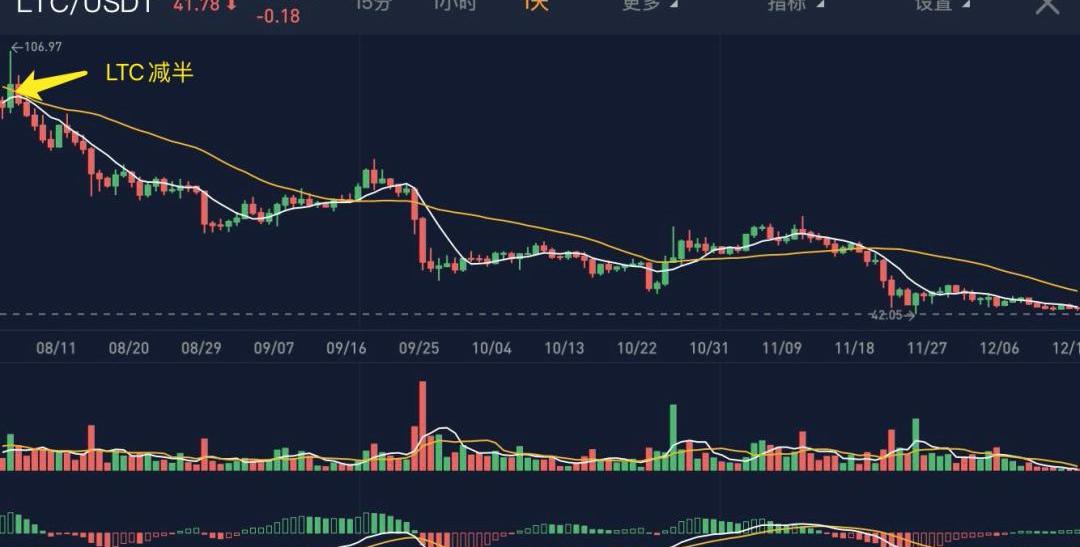 據OKEx數據顯示,LTC減半當日的最高價為106.97美元,此后LTC一路走低,雖在春節期間出現反彈,但在2020年3月,一度跌至23美元附近,目前LTC暫報41.78美元,與減半當日最高價相比已跌去60.94%。