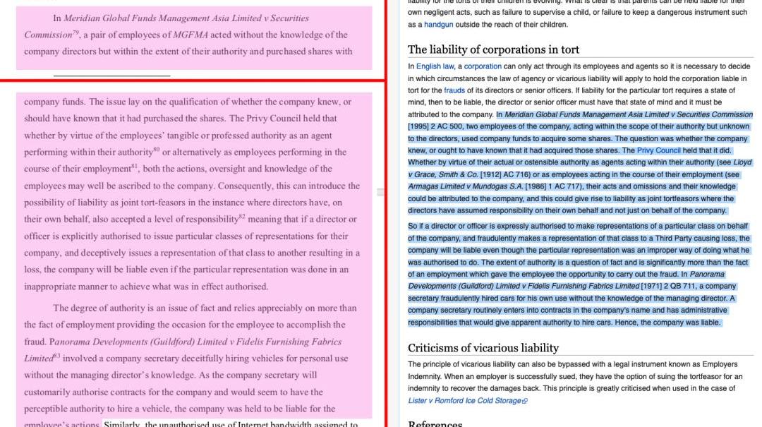 賴特在有些部分直接復制了全部腳注塊,而在將這些內容復制到自己論文中時,賴特特意刪除了Mann&Belzley對自己的腳注列表的引用,具體可見Kraakman條目: