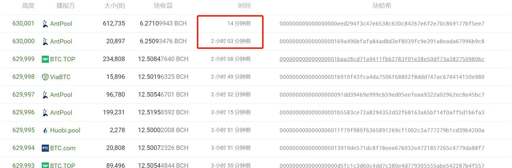 1、BCH減半,2小時未出塊是奔潰了嗎?