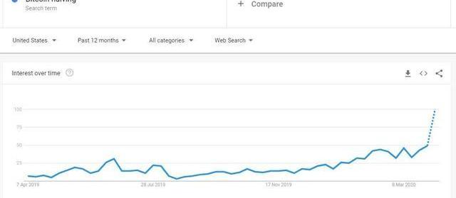 而這一關鍵詞搜索量的增加似乎與最近新聞頻繁報道即將到來的減半有關。