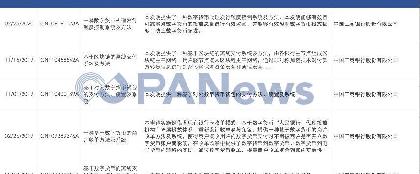 工商銀行與CBDC直接相關的專利|來源:國家知識產權局,PANews制表