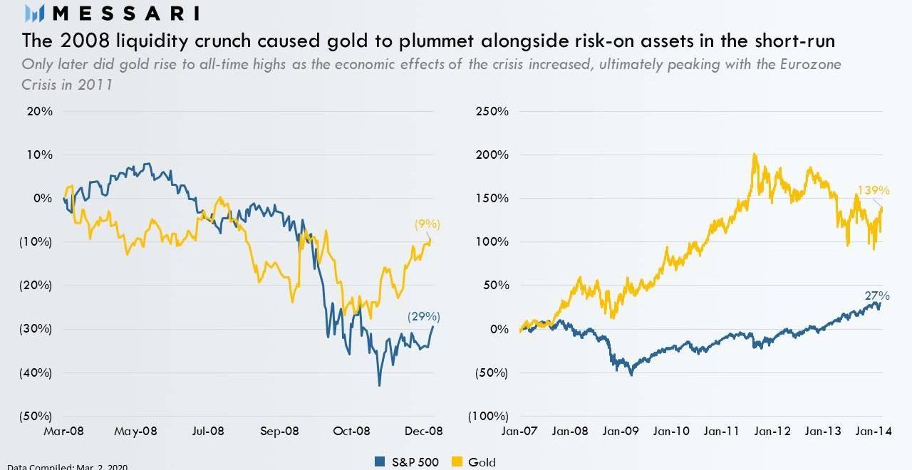 比特幣并不能對沖經濟衰退。與短期內出于投機目的而持有的黃金類似,我們上周經歷的流動性緊縮可能會導致投資者出售比特幣,以滿足其他投資組合的流動性限制。在嚴重的市場壓力下,人們不應指望比特幣能夠可靠地保值,它上周的表現也不應讓人感到意外。在2008年金融危機期間,黃金正是這樣的。