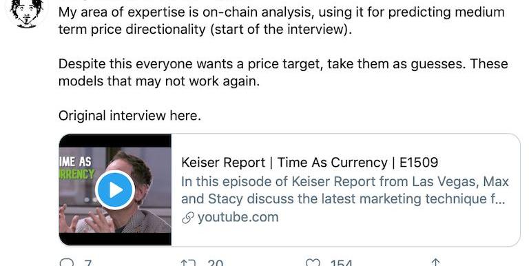 他還表示,通過鏈上分析,他可以觀察到礦工們是否在賣幣、市場上的資金移動以及其他指標,從而了解幣價走勢。Keiser表示WillyWoo已經做出了許多準確的判斷。