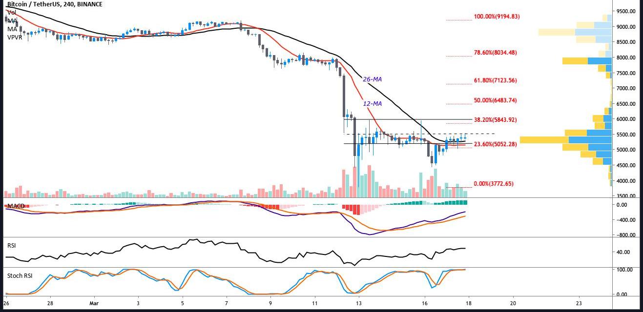 比特幣市場周二繼續從上周一度跌至3700美元的災難性暴跌中復蘇,該數字資產今日一度突破5500美元,隨后回落至5400美元以下。加密市場走勢的轉暖似乎是從今天的白宮新聞發布會上獲取的士氣,美國財長姆努欽證實了有關特朗普政府將實施價值達1萬億美元的冠狀病應對方案的報道。