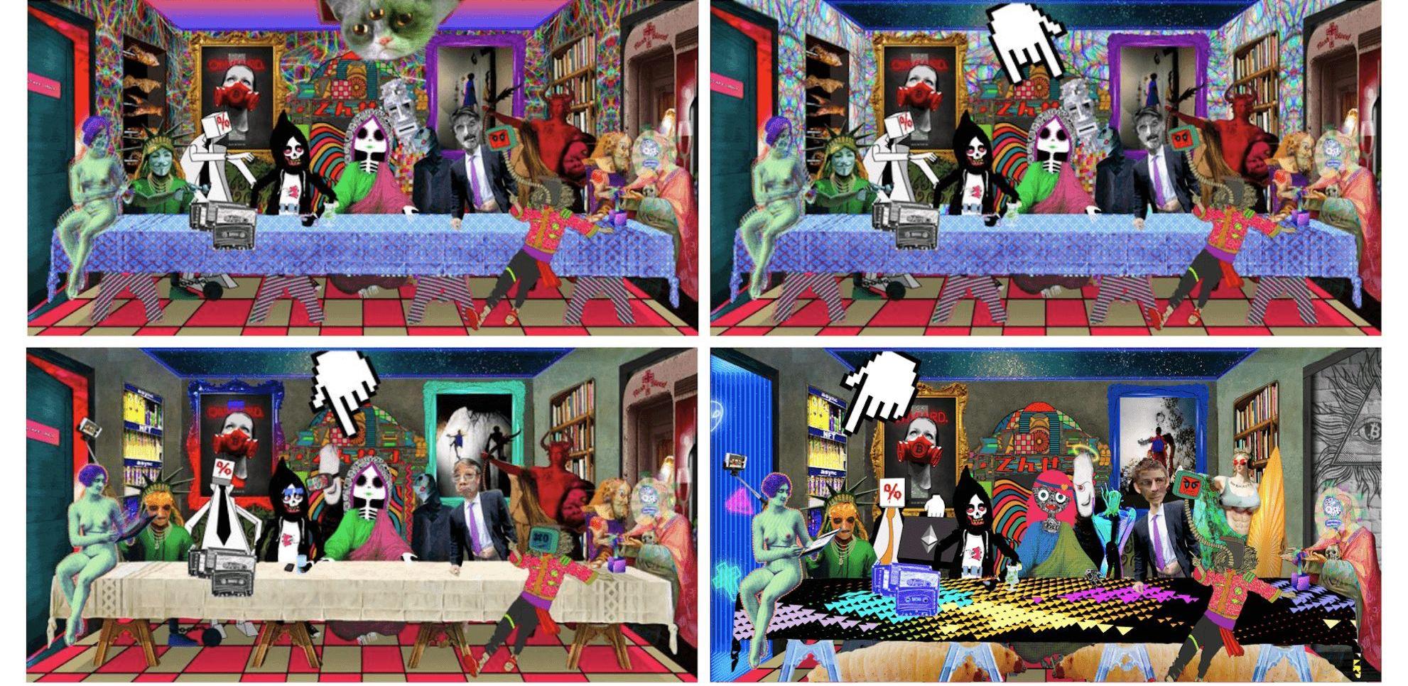 FirstSupper是該平臺第一幅被拍賣的Master作品,也是一幅很有”背景”的加密藝術作品,它是目前唯一一幅由多位藝術家一起協作完成的作品,其中總計13位藝術家創作了22個Layer,構成這幅FirstSupper,頗有意味地致敬《最后的晚餐》。這13位藝術家大多是目前加密藝術這個新興圈子內活躍的KOL,給該作品帶來了不少背書。隨便拉出幾位講一講: