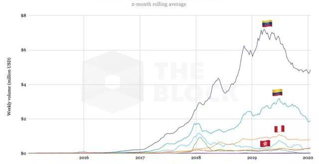 委內瑞拉比其他“高風險”經濟體購買的比特幣要多得多,阿根廷,哥倫比亞,土耳其和伊朗等國也認為,比特幣交易量的增加是對沖通貨膨脹率的對沖工具之一。