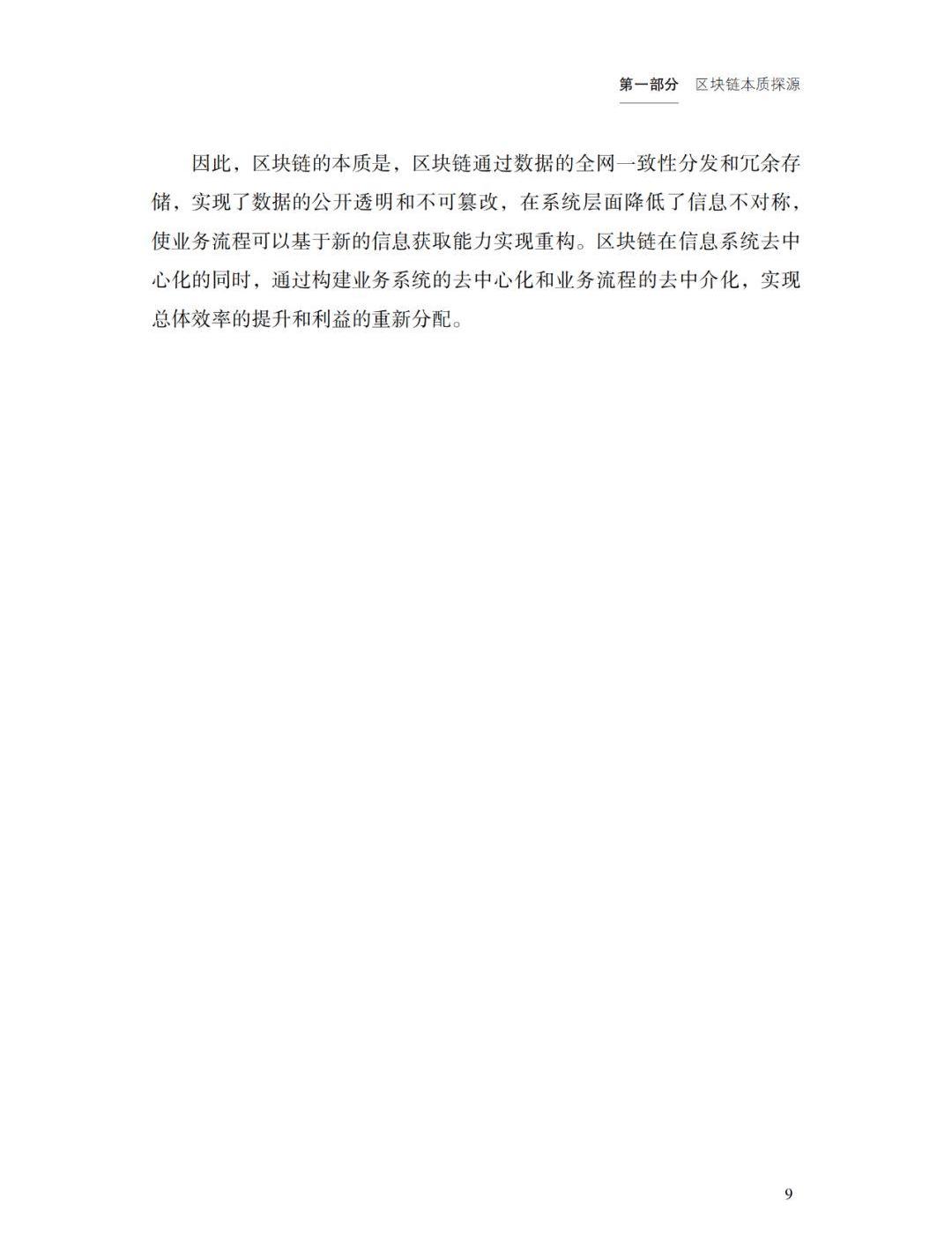 今日為欄目的第一部分“區塊鏈技術基礎”。本章內容主要是對區塊鏈領域的關鍵概念做了解釋,介紹了區塊鏈系統的特點、區塊鏈技術基座等。同時高博士指出,區塊鏈的本質是,區塊鏈通過數據的全網一致性分發和冗余存儲,實現數據的公開透明和不可篡改,在系統層面降低信息不對稱,使業務流程可以基于新的信息獲取能力實現重構。區塊鏈在信息系統去中心化的同時,通過構建業務系統的去中心化和業務流程的去中介化,實現總體效率的提升和利益的重新分配。