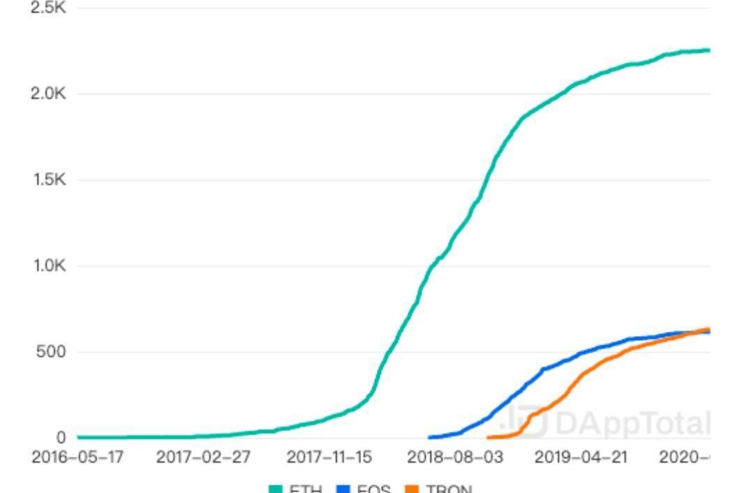 ETH、EOS和TRON的DApp總數對比,DappTotal.com