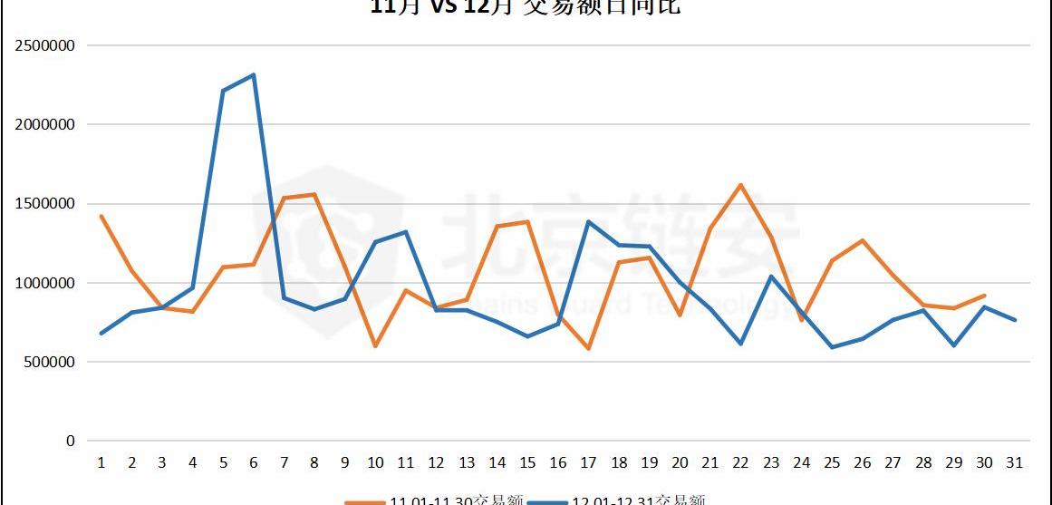 最后再看看活躍地址數,也就是主動發起轉賬的地址數,12月活躍地址數為14126583個,比11月的12724757個增長了11.02%