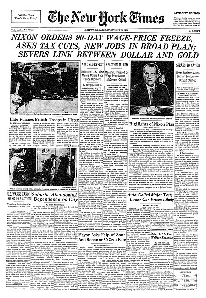 1971年8月22日,《紐約時報》頭版。資料來源:《紐約時報》