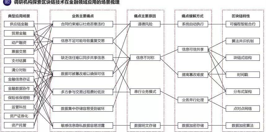 從現階段技術基礎、應用實踐和金融監管要求來看,區塊鏈技術在我國金融領域應用已初具條件,部分概念驗證應用已催生一定規模的商用產品,在供應鏈金融、金融信息存證及流通、支付結算等場景中已形成了一些落地案例。從調研機構的實踐情況看,當前區塊鏈技術在我國金融領域的應用探索呈現出以下幾個主要特點。