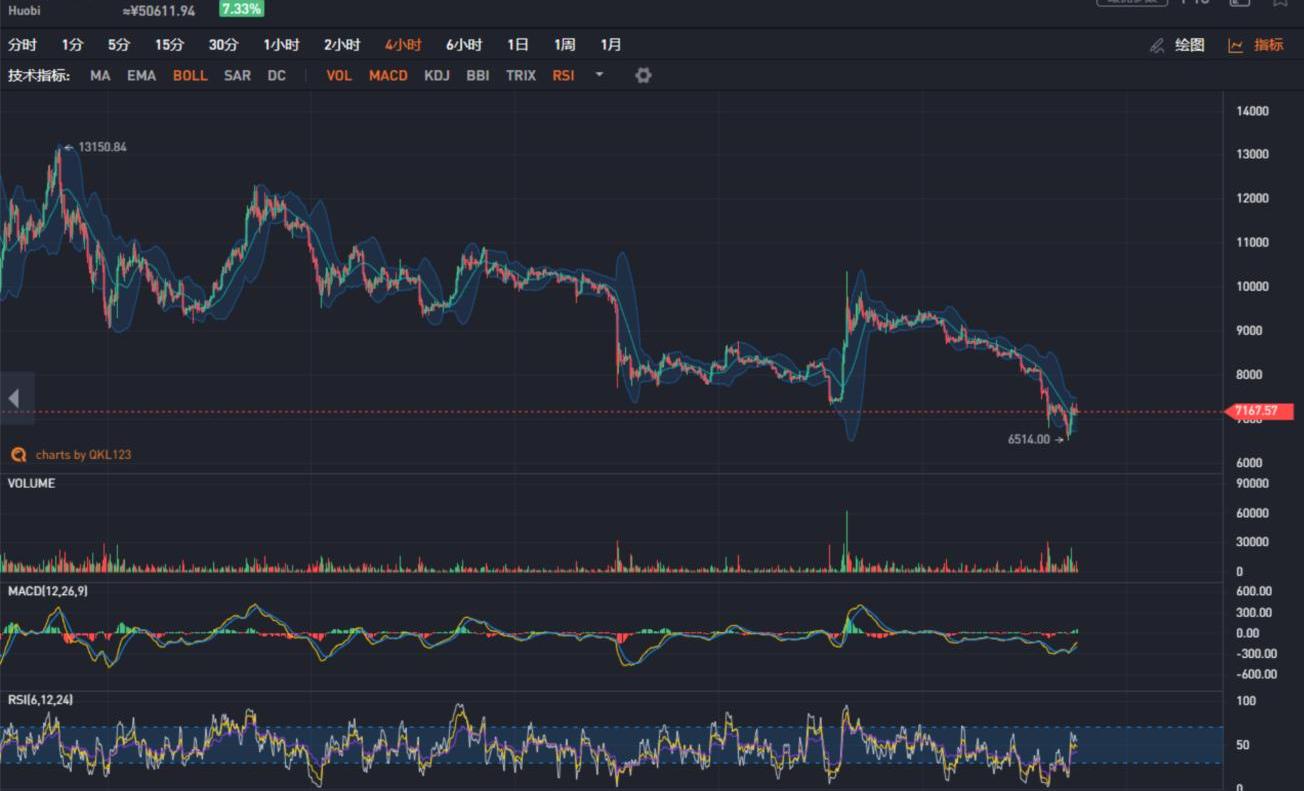 昨日BTC最低觸及6500美元強勢反彈,日線RSI指標超賣有所緩解,最高反彈至7400美元,但并未突破7500美元阻力位,短時區間震蕩為主。從歷史趨勢來看,比特幣在開始嚴重偏離200日均線的情況下出現強力反彈,說明市場還是有短時修復的可能,否則市場將繼續下探6000美元。