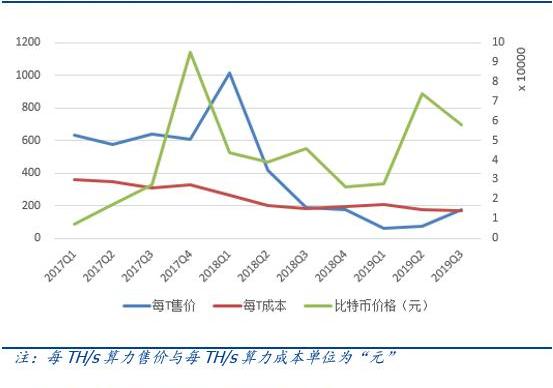 比特幣礦機為公司主要營收來源,2019H1行業受幣市、算力市場波動和新品量產能力影響較大,預計下半年有望業績企穩。公司近年營收主要以比特幣礦機為主,占比超過99%。2017年至2018年以及2019年上半年,公司收入分別為13.08億元、27.05億元、2.89億元;凈利潤分別為3.76億元、5720萬元、-3.14億元。毛利率來看,2017年比特幣處于牛市,礦機市場景氣,公司成熟產品快速占領市場,因此毛利率高達46.2%;2018年8月,公司推出全球首款7nmASIC芯片,最新制程芯片的研發有利于公司保持行業領先,但芯片研發、流片前期成本投入較大,在熊市背景下,公司是毛利率持續下降,2019年上半年毛利率3.88%。2019年第三季度,公司實現收入6.7億元,凈利潤9114萬元,與去年同期扭虧為盈。隨著幣價和算力穩定增長,公司業績有望加速釋放。