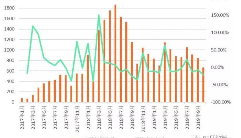2019年前10月,中國市場新增區塊鏈相關企業8895家,占比達到29%。但與2018年同期相比出現一定幅度的回落,同比下降約40%。