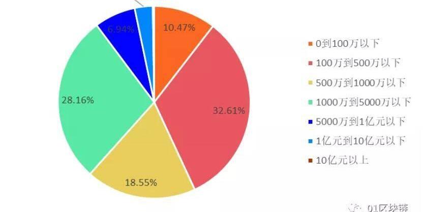 當前中國區塊鏈相關企業以中小型企業為主,注冊資本普遍在百萬級和千萬級。