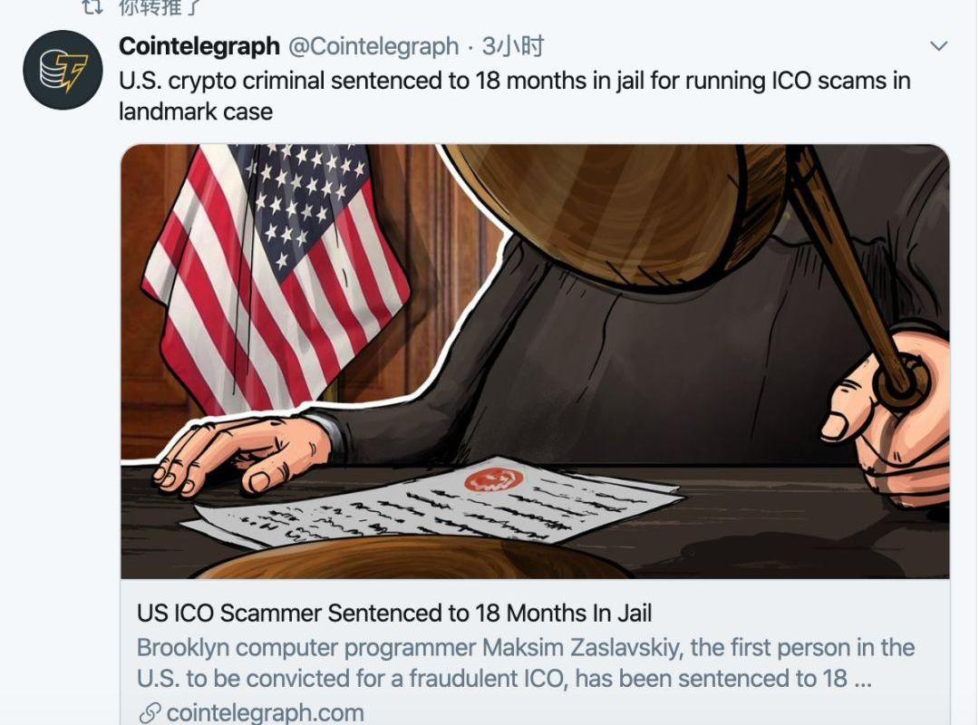 3、據Cointelegraph報道,美國第一例ICO詐騙被判刑,刑期18個月。該ICO聲稱有鉆石和房地產背書,在2017年向1000多位投資者募集了30萬美金。