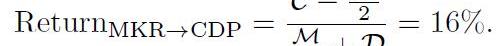 截至2019年11月5日,這些價值為抵押品價值C=3.36億美元,MKR市值M=5.55億美元,Dai市值D=9600萬美元。這就產生了潛在的攻擊利潤: