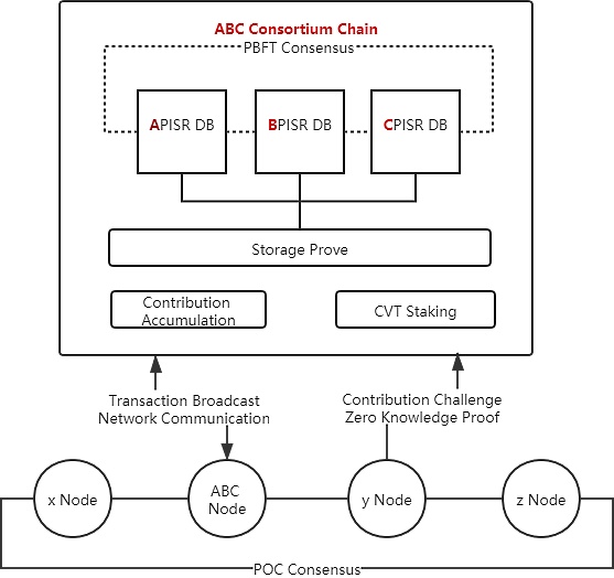 CyberVein智慧城市生態將由一條基于POC共識的公鏈和無數條基于PBFT共識聯盟鏈構成。每一個基于PISR數據庫的聯盟鏈都是一個參與POC共識的節點。每一個基于PISR數據庫的聯盟鏈都是一個參與POC共識的節點。DAVE Alliance中的聯盟成員也是由一個個在公鏈上的節點聯盟鏈組成。但DAVE Alliance成員一定是公鏈上的節點,而公鏈上的節點不一定是DAVE Alliance的成員。