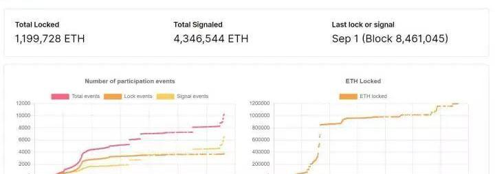 匯聚了各種光環的Edgeware,在Lockdrop方面大獲成功,根據官方數據顯示,Edgeware一共吸引了一萬多名參與者,匯聚了近550萬枚ETH,其中有4,346,544枚ETH參與Signal,1,199,728枚ETH則參與了鎖倉。