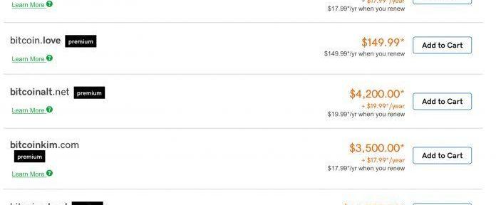 上圖:與比特幣相關的域名價格可能更貴,并且比通用域名的成本要高得多。