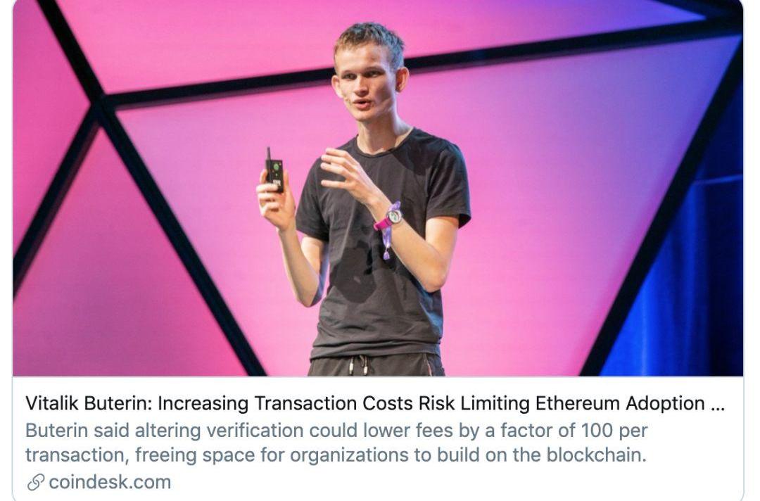 事由:以太坊創始人V神本周在一個名叫TorontoStar的媒體上說,以太坊區塊鏈上交易成本的增加正在損害以太坊的采用率。