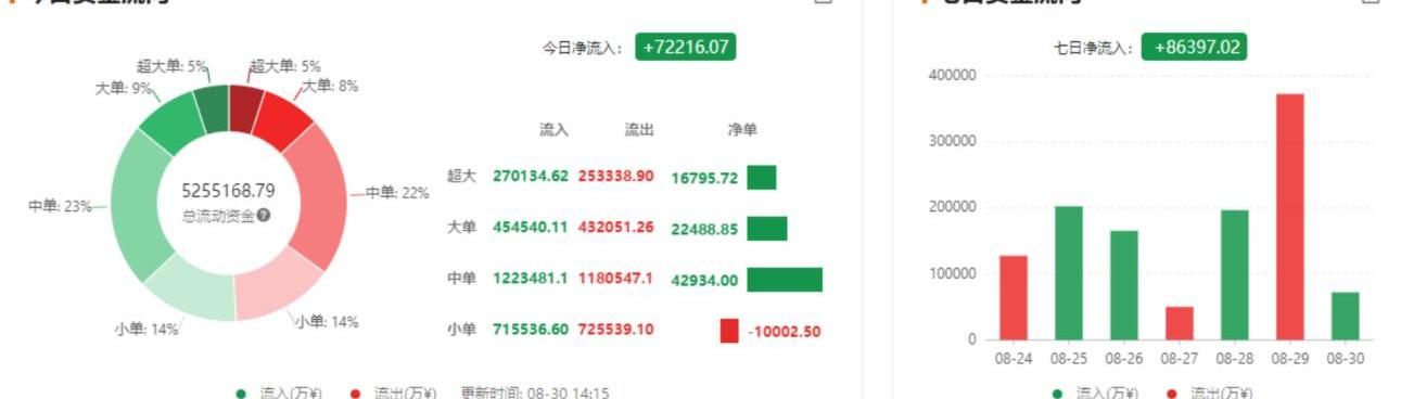 截至14時,BTC的今日資金凈流入72216.07萬元,較昨日出現反轉。其中,超大單凈流入16795.72萬元,大單凈流入22488.85萬元,中單凈流入42934.00萬元,小單凈流出10002.50萬元。市場以中單建倉居多。