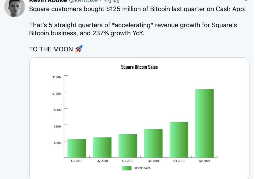 據Coindesk報道,Square2019年第二季度通過Cashapp銷售了1.25億美金的比特幣,是第一季度近兩倍。