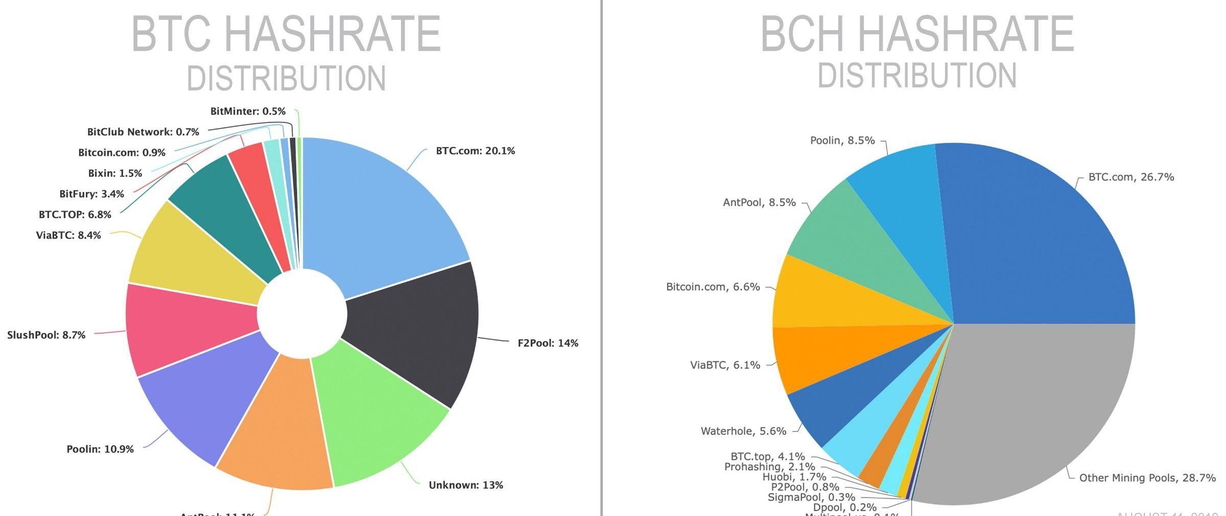 2019年8月11日BTC和BCH算力分布。