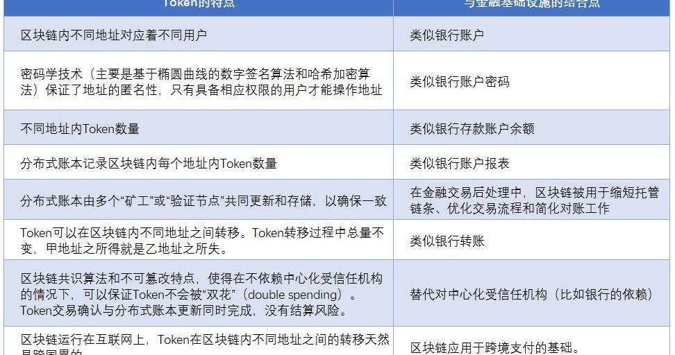 總的來說,Token代表區塊鏈外的資產或權利,本質上反映了區塊鏈與金融基礎設施之間的關系。區塊鏈在貿易融資、應收賬款和數字票據等場景的應用、穩定幣及中央銀行數字貨幣,都屬于這類應用。