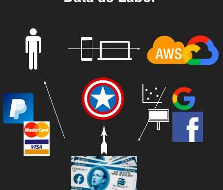 圖2是互聯網時代的勞動模式,用戶通過在手機或電腦上產生數據,互聯網公司通過AI算法等技術將數據轉化成法幣,法幣的信貸變成了信用卡。