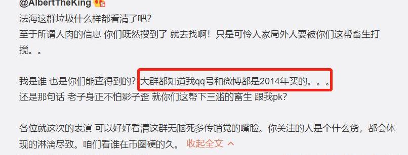 同時,對于AK聲稱自己的qq號和微博是買的這一說法,張烽認為,微博購買自他人本身不違法。需要關注的事,他是否利用該微博的粉絲量等一些指標資質去明示或暗示他的投資及相關能力,如果是可能構成詐騙。