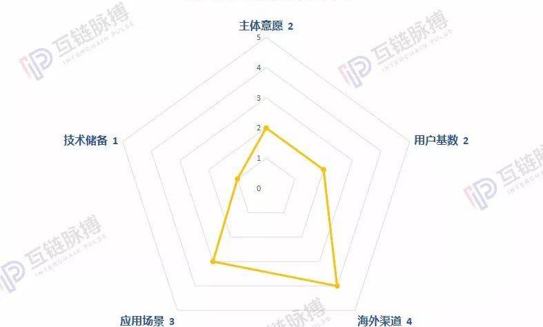 事實上,跨國機構的形式是互鏈脈搏對于“中國版Libra”的一種設想。目前來看,尚未有主動的發起方,因而互鏈脈搏評估其主體意愿較低;相對于央行、大型互聯網企業等組織機構,跨國機構的用戶基數、技術儲備的分值均較低;而海外渠道、應用場景則相對廣泛一些。