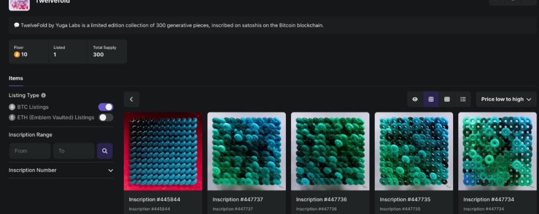 上圖是YugaLabs推出的BitcoinNFT——Twelvefold。