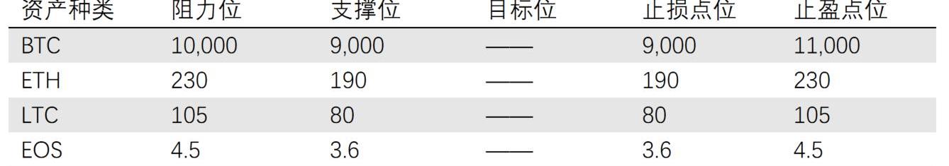 短時BTC下行風險增加,可逢高減倉,以觀望為主。BTC阻力位10,000美元,支撐位9,000美元;ETH、LTC和EOS振幅相對較大,看BTC的方向擇機而動。