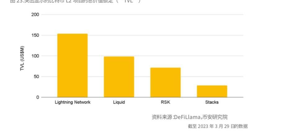 L2上鎖定的價值相對較少也表明,點對點交易以外的用例尚未找到適合比特幣的產品市場。由于比特幣基礎層沒有圖靈完備的、有表現力的智能合約引擎,例如EVM在以太坊上,需要L2才能將這種可編程性添加到比特幣中。