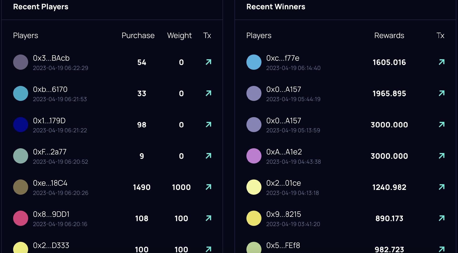 幸運掉落的幸運權重根據單個地址買入的AIDOGE價值等比例提升,最低為1,最高為10。幸運權重采用向下取整的方式,比如某地址買入價值180美元的AIDOGE代幣,那其幸運權重為1。每一輪結束后,幸運券將被重置。根據官方數據,目前通過幸運掉落分發出去的ARB代幣數量為15.9萬個,總參與地址數9500個,獲得幸運掉落的地址177個。