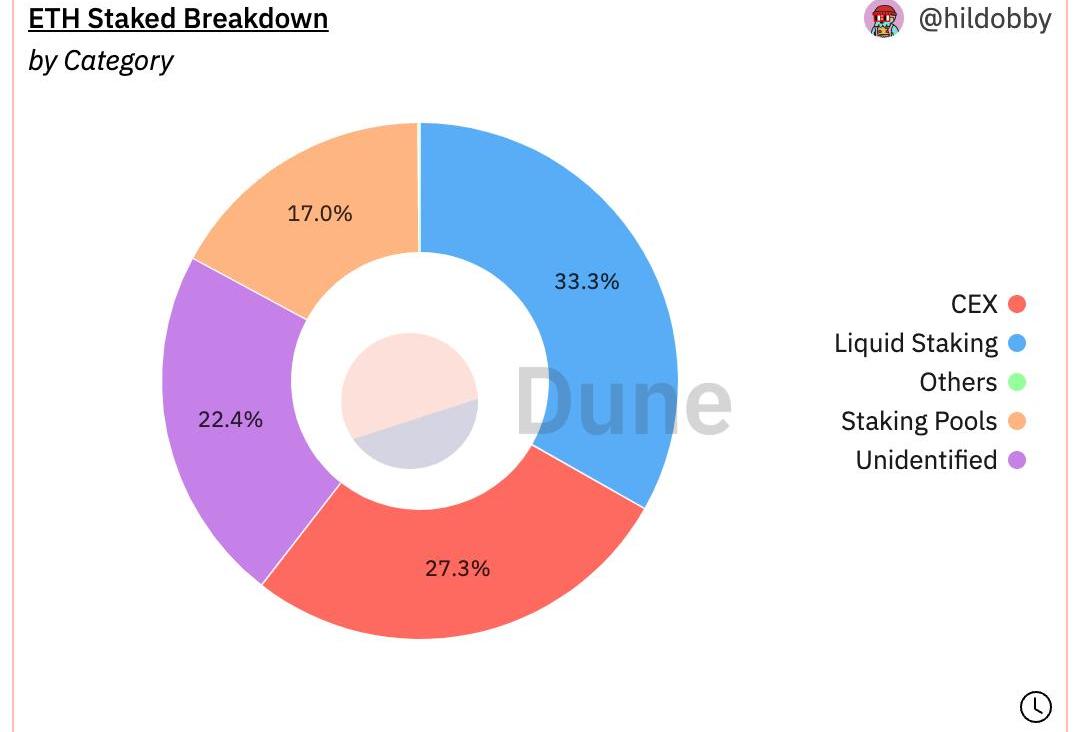 目前有約60%的以太坊被質押在提供了抵押流動性衍生品的服務商,僅約40%的以太坊屬于獨立驗證者和質押池,這二者在此次上海升級中所受到的影響是不同的。