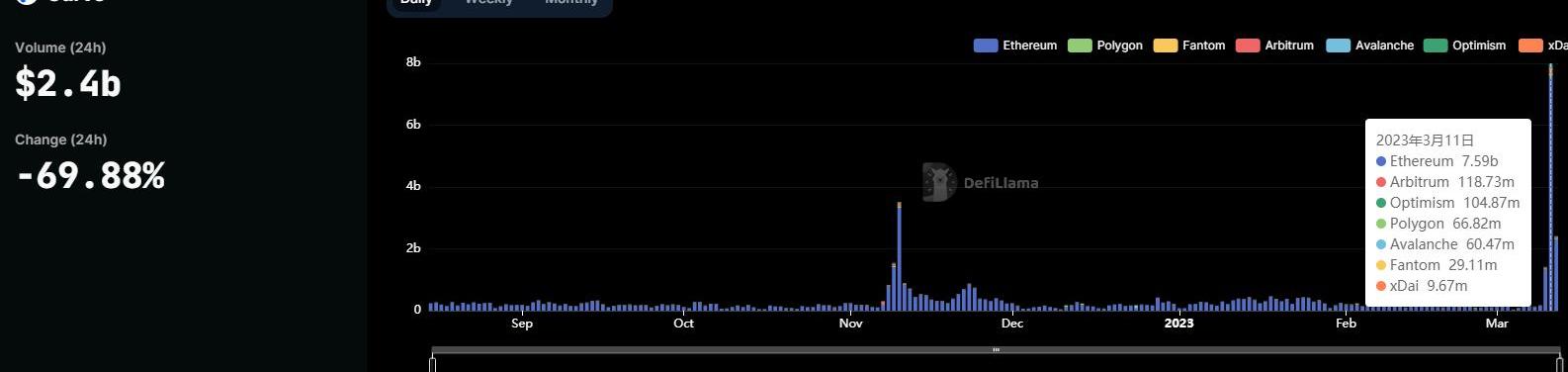 XRP/HKD-2.69%硅谷銀行倒閉導致美元穩定幣USDC上周末出現脫錨并一度跌至0.87美元低點,FUD情緒也在加密市場蔓延,不過這一黑天鵝事件造成的影響似乎并沒有想象中的那么大,DEX的交易活動和費用收入甚至出現了指數級增長。