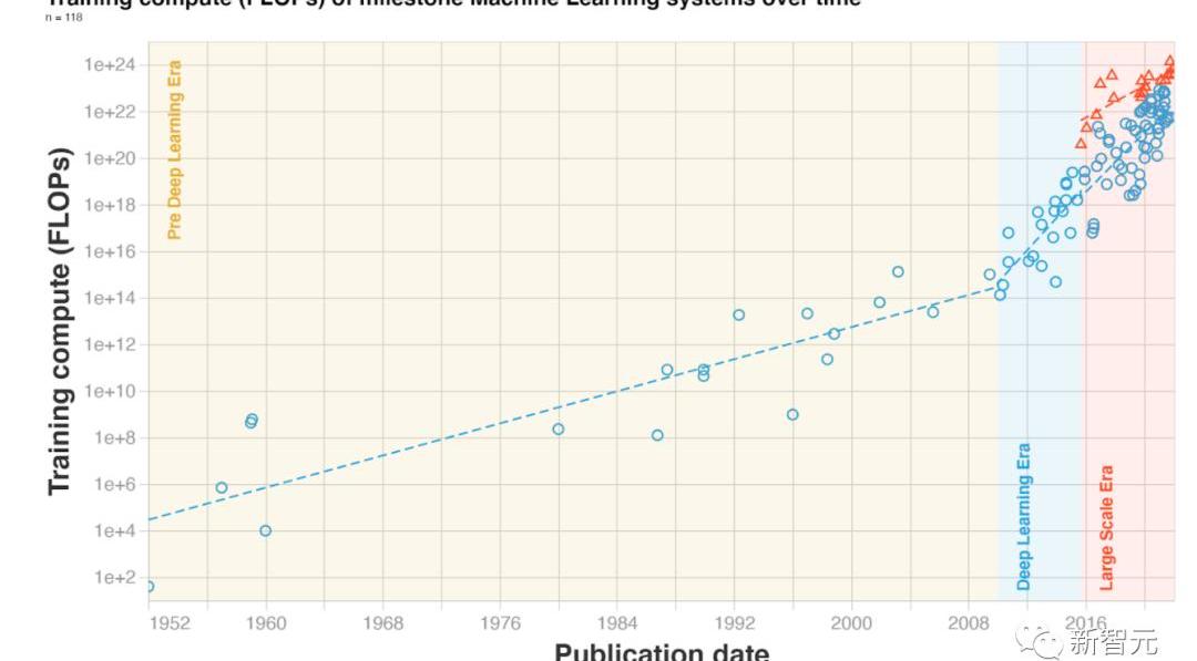 根據「2022年人工智能現狀報告」,機器學習中的計算需求加速增長。根據每個模型的訓練計算量翻倍的時間,它確定了機器學習的三個時代。