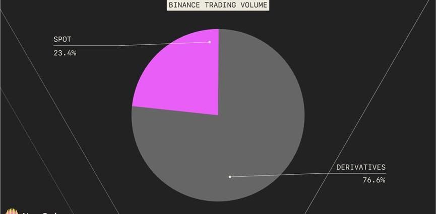 中心化交易所的加密貨幣衍生品交易平均占加密貨幣總交易量的69%。例如,Binance每日交易量的76.6%來自衍生品。