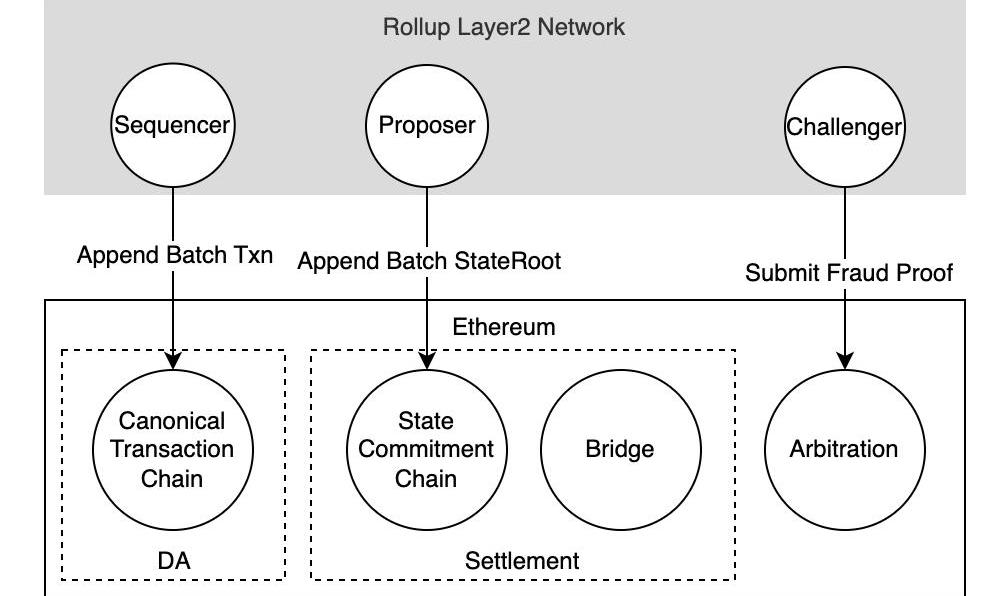 數據可用性需要有個公開的不可篡改的賬本來記錄應用的交易。自然想到,區塊鏈賬本就是這樣一個系統,于是將Layer2的交易寫回Layer1,保證數據可用性,這也就是Rollup名稱的來源。