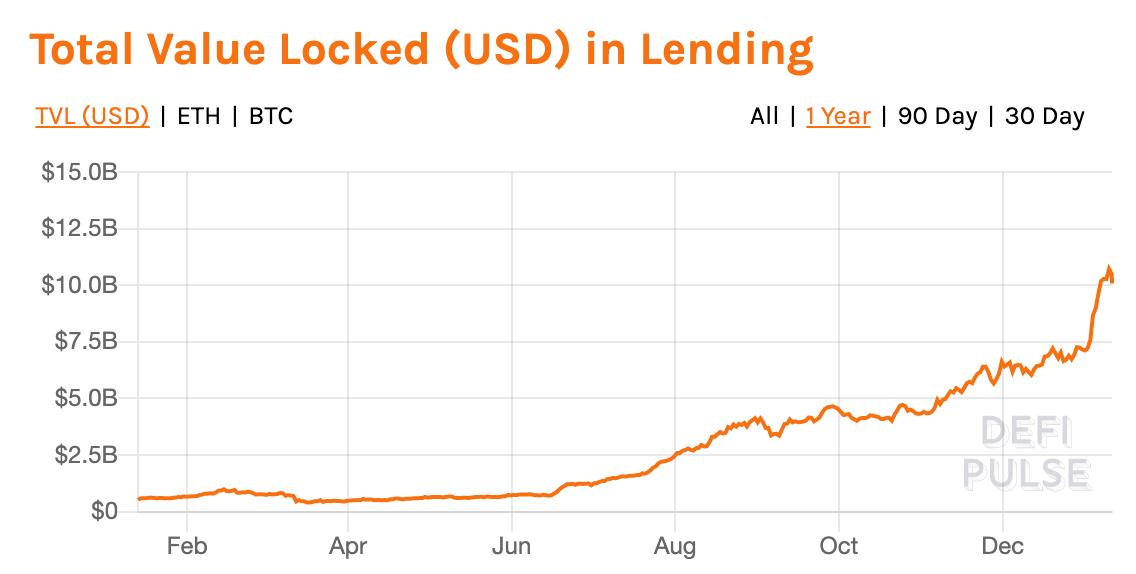 密碼學貨幣行業顯然對信貸的需求量很大。據中心化借貸協議的數據顯示,借貸市場目前價值數十億美元,這還只是起步階段。