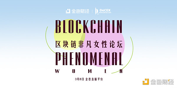 3月8日,由金色財經主辦、DeCEX總冠名、Gate. Io聯合呈現的“區塊鏈非凡女性論壇”將在金色財經直播平臺舉辦。此次論壇聚焦女性領袖在區塊鏈行業發展中的多重角色,熱議前沿話題和熱點議題,助力與賦能未來女性領導者。