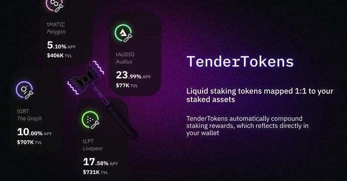 Tenderize是部署在以太坊/Arbitrum上的流動質押協議,支持$MATIC/$GRT/$AUDIO/$LPT四種資產的流動質押。除MATIC外,剩余3種資產可能大家比較陌生。其中Graph(GRT)是去中心化索引賽道的龍頭,Livepeer(LPT)/Audius(AUDIO)分別是去中心化流媒體和去中心化音樂賽道的代表項目。