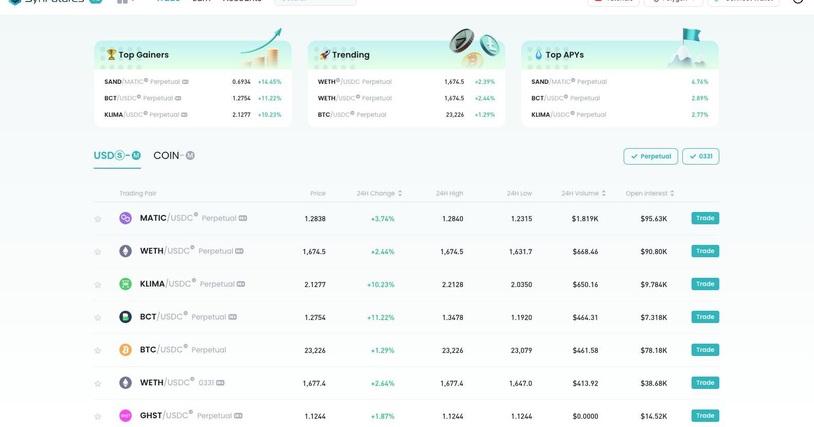 SynFutures是一個去中心化衍生品交易平臺,其v1版本部署在Polygon、BSC和Arbitrum網絡上,主要支持加密貨幣期貨交易。v2版本加入了永續期貨、DAO期貨以及NFT期貨以豐富產品類型。目前,SynFuturesv2版本在封閉Alpha測試階段,僅支持Polygon網絡。