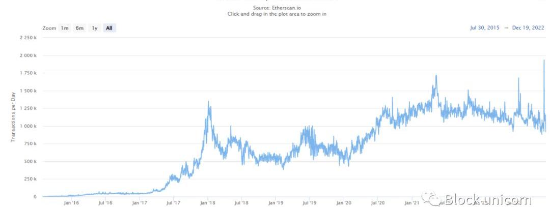 以太坊是采用率最高的最強壯的L1區塊鏈。自2020年以來,該網絡目前已達到2.17億個唯一地址,每天的交易數量超過100萬筆。