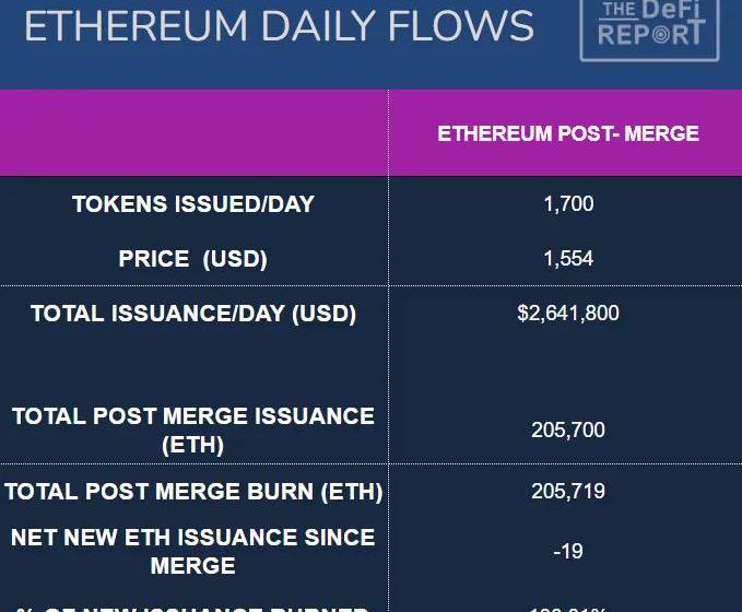 我們可以將盈利能力的轉變歸因于9月16日發生的合并。下面我們可以觀察合并以來ETH的凈新發行量。