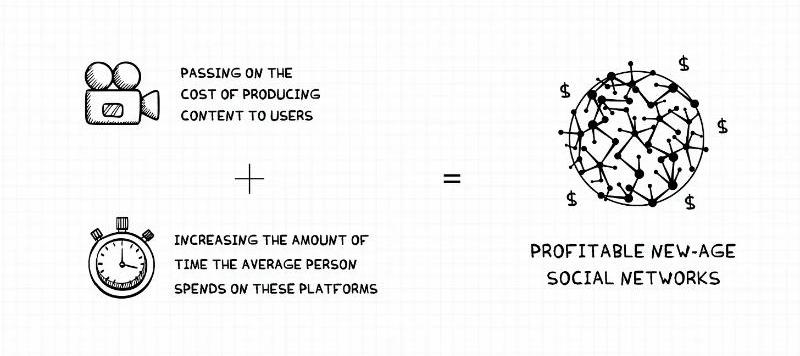 與傳統媒體不同的是,社交網絡創建內容的成本降低到了零,同時也使其有可能捕獲越來越多的用戶注意力。在所有花在你的平臺上的時間之間,在這里和那里插上一個廣告,你就有了一臺正在制造的印鈔機。