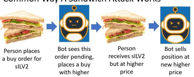 UniV4的另一個可能的特性是批量拍賣系統。礦工可提取價值(MinerExtractableValue,簡稱MEV)是公共區塊鏈的通病,會導致交易者效率低下。當用戶進行交易時,它會在等待確認的同時進入區塊鏈內存池,以太坊驗證器可以看到此交易并執行三明治攻擊,其中他們購買用戶正在交換的代幣,然后用戶訂單生成,驗證器出售他們剛剛購買的所有代幣,這是可能發生的,因為驗證者對交易的排序有最終決定權。