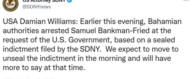 SBF被抓的視頻身穿白色上衣西裝外套,比他以前每一次受訪的衣服都還要正式。巴哈馬回應,他們是為了響應美國政府的要求,逮捕了SBF。巴哈馬稱,收到美國正式通知之后,會配合進行SBF的引渡去美國來受審。另外巴哈馬總理PhilipEdwardDavis說:巴哈馬跟美國的利益追求是一致的。